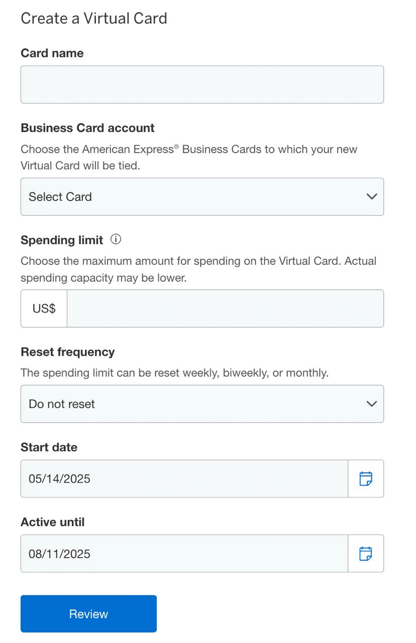 A American Express acaba de liberar uma função muito esperada por quem tem cartões Business: agora é possível criar cartões virtuais com controle total sobre limite, validade e uso — direto pela conta online ou pelo Business Blueprint.