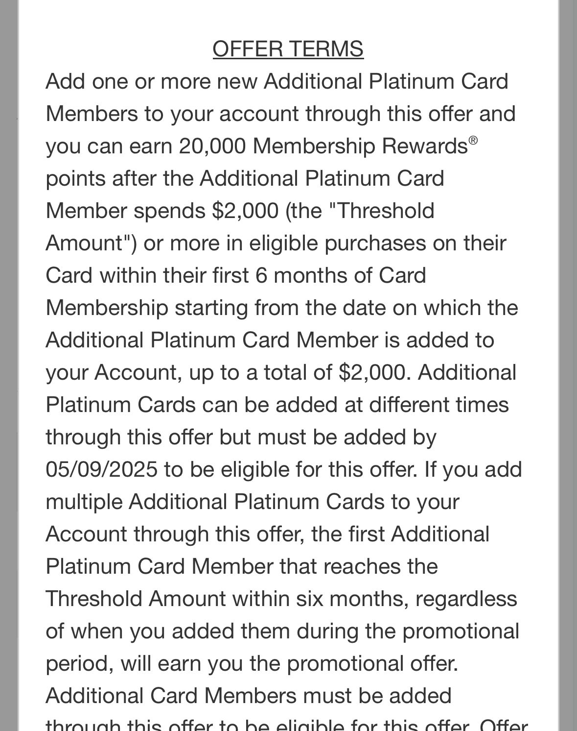 Eu decidi pedir um cartão adicional em maio de 2024, aproveitando um bônus de 20.000 pontos Amex ao gastar US$2.000 em seis meses (tirei o print ao lado). Esse bônus já compensa a anuidade, e como também preciso de mais entradas nas salas Centurion Lounges, decidi aproveitar a oportunidade. Minha dica é sempre ficar de olho nas ofertas no App do Amex.