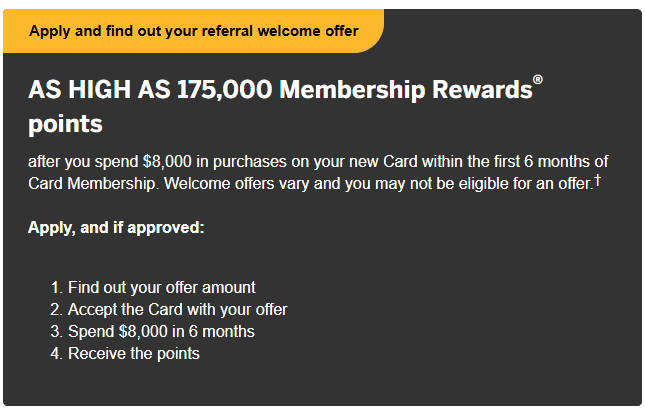 Ótima notícia para os colecionadores de pontos: A oferta de até 175.000 pontos Membership Rewards do Amex Platinum está de volta! Após sumir por um período, a American Express retornou com esta oferta impressionante que pode render até 175.000 pontos após gastar US$ 8.000 nos primeiros 6 meses.