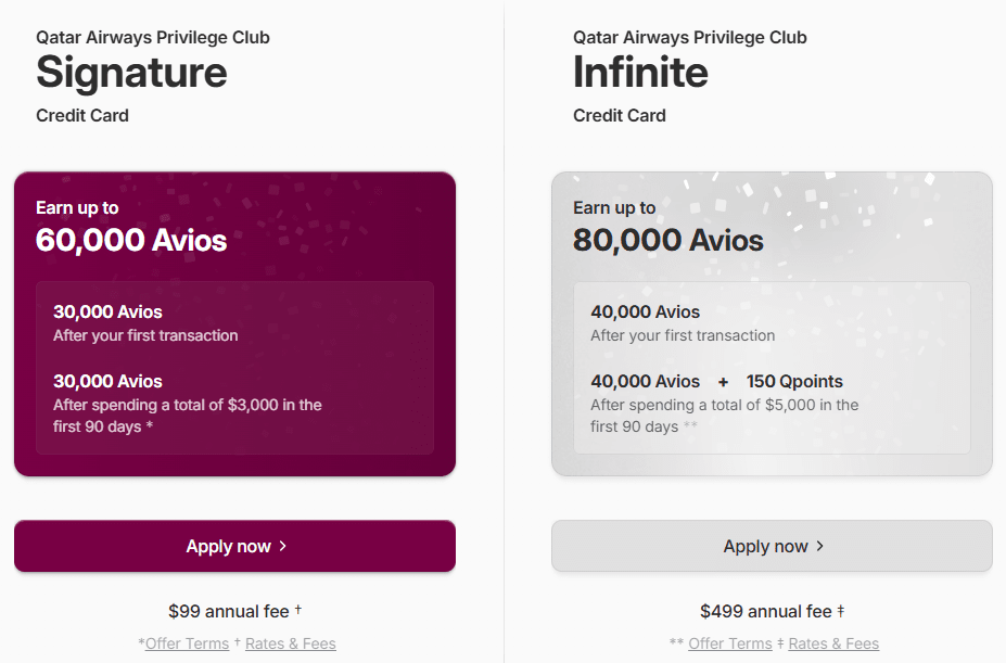 Nota: As compras na Qatar Airways mantêm as taxas regulares (5x no Infinite e 4x no Signature).
