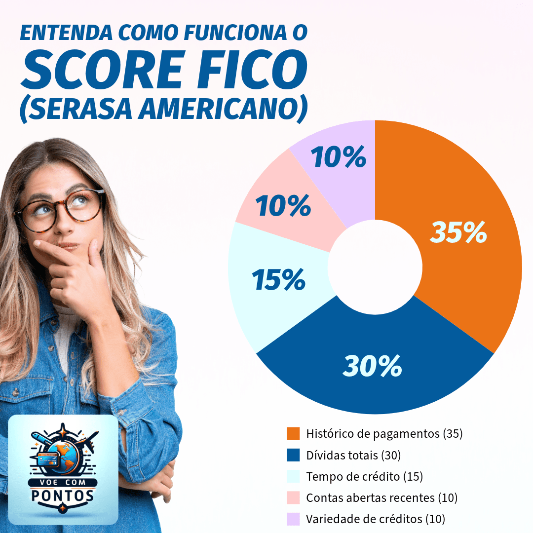 O score americano é um número que varia de 300 a 850 e mostra o quão confiável você é para os bancos e instituições financeiras dos EUA. Ele é calculado com base em: