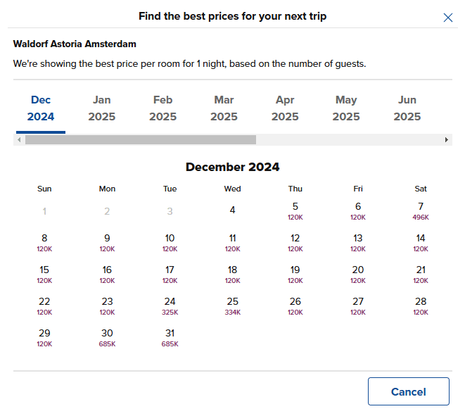 - O calendário exibirá a quantidade de pontos necessária para diferentes datas, facilitando a escolha da melhor opção.